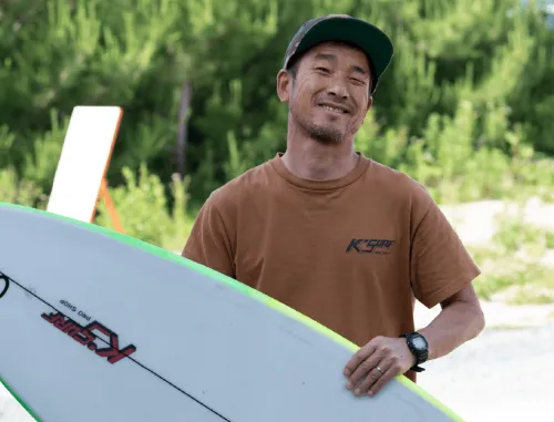 オーナーの杉本さんは大槌町の南隣・釜石市の出身で、サーフィンを始めたのは中学生のころ。地元の先輩が経営する市内のサーフショップでサーフボードを手に入れ、向かったのが浪板海岸でした。浪板の海は三陸では珍しい遠浅で、初心者がサーフィンをするのに適していました。
