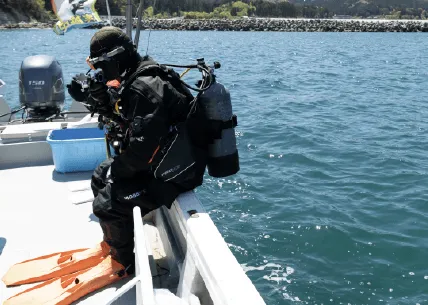 藻場再生協議会が潜るのはレジャーが主な目的ではありません。海水温上昇などの環境変化により増えすぎたウニが海藻類を食べ尽くす磯焼けを食い止め、“森”である藻場を回復させるための活動なのです。