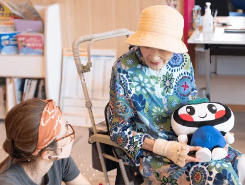 おしゃっちで働くスタッフはもちろん、利用者も知り合いばかり。「テルさん、この前のコンサートどうだった?」などと話しかけられ、時にはショッピングカートに腰を下ろして、おしゃべりに花を咲かせます。